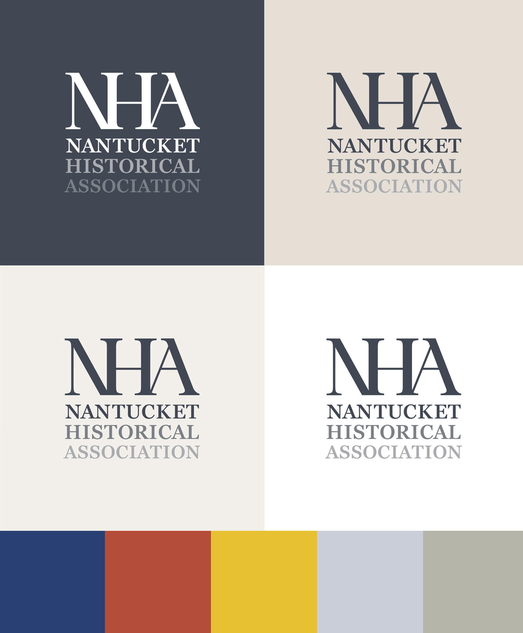 A sophisticated color palette anchors the rebrand. Grey serves as the primary brand color — a tribute to Nantucket's nickname “The Grey Lady” — while supporting colors are inspired by the island's distinctive red brick buildings, weathered cobblestone streets, and surrounding Atlantic Ocean.